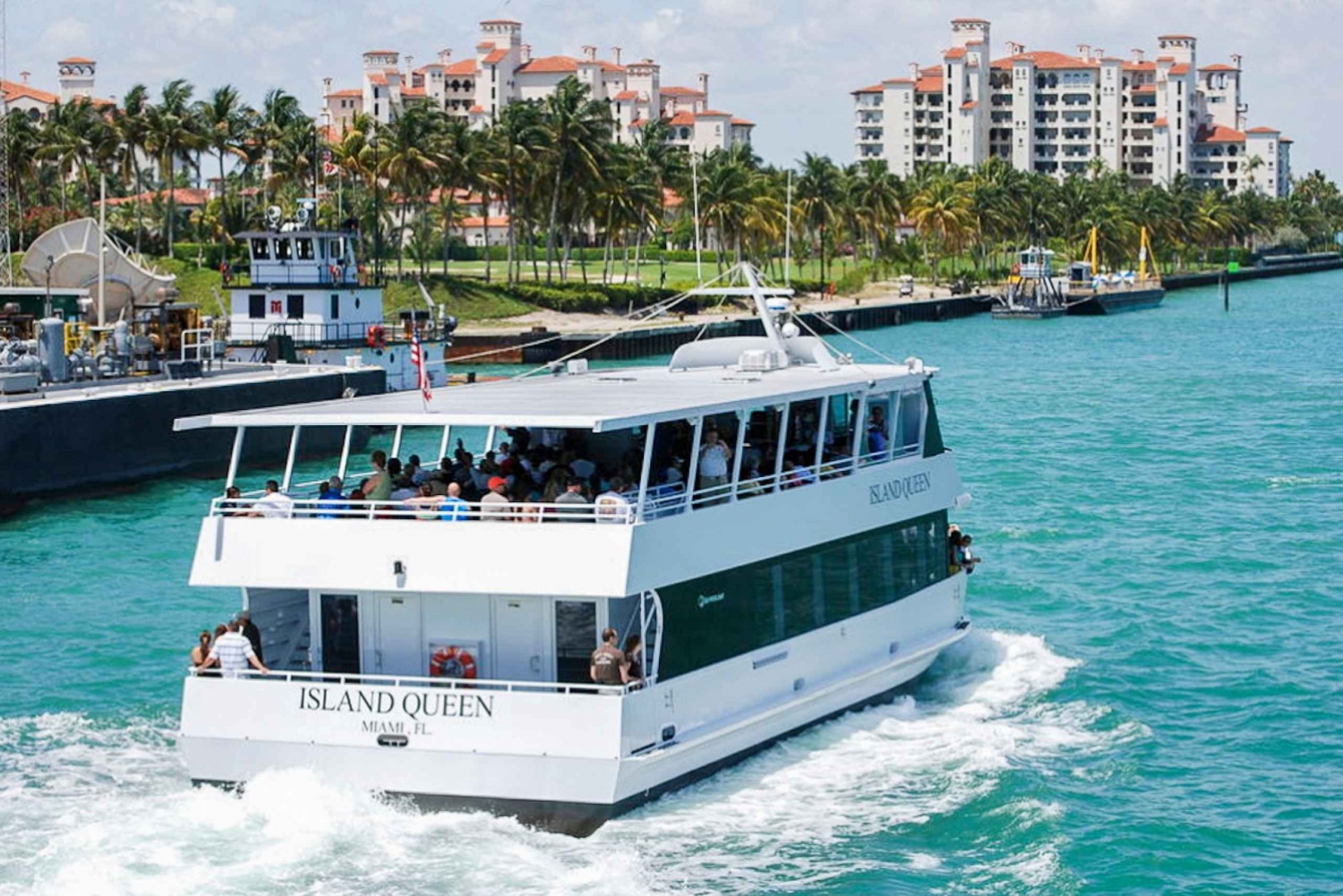 Slap af med et sightseeing-krydstogt på Biscayne-bugtens azurblå vand. Fra dækket har du en fantastisk udsigt over Miamis havn, Fisher Island og det passende navn 'Millionaire's Row', hvor Hollywoods, politikkens, sportens og erhvervslivets 'who's who' har deres luksushjem. Nyd den solbeskinnede udsigt fra øverste dæk eller nedefra med en bar om bord.