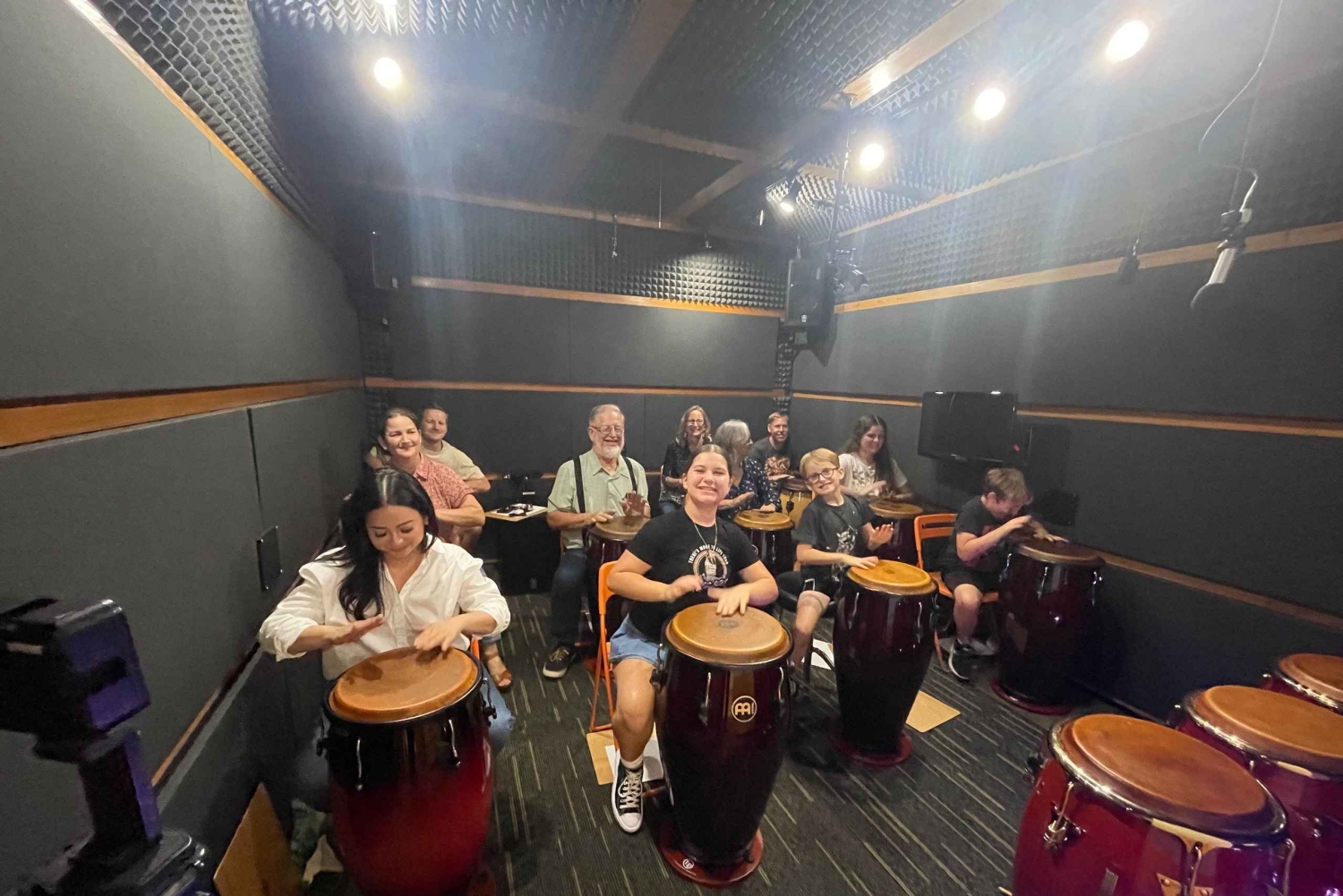 Aprende a tocar los tambores conga en sólo 15 minutos con un músico profesional. Disfruta de un espectáculo de 2 horas con historia de los tambores conga y lección incluida. ¡2 horas de diversión y música!