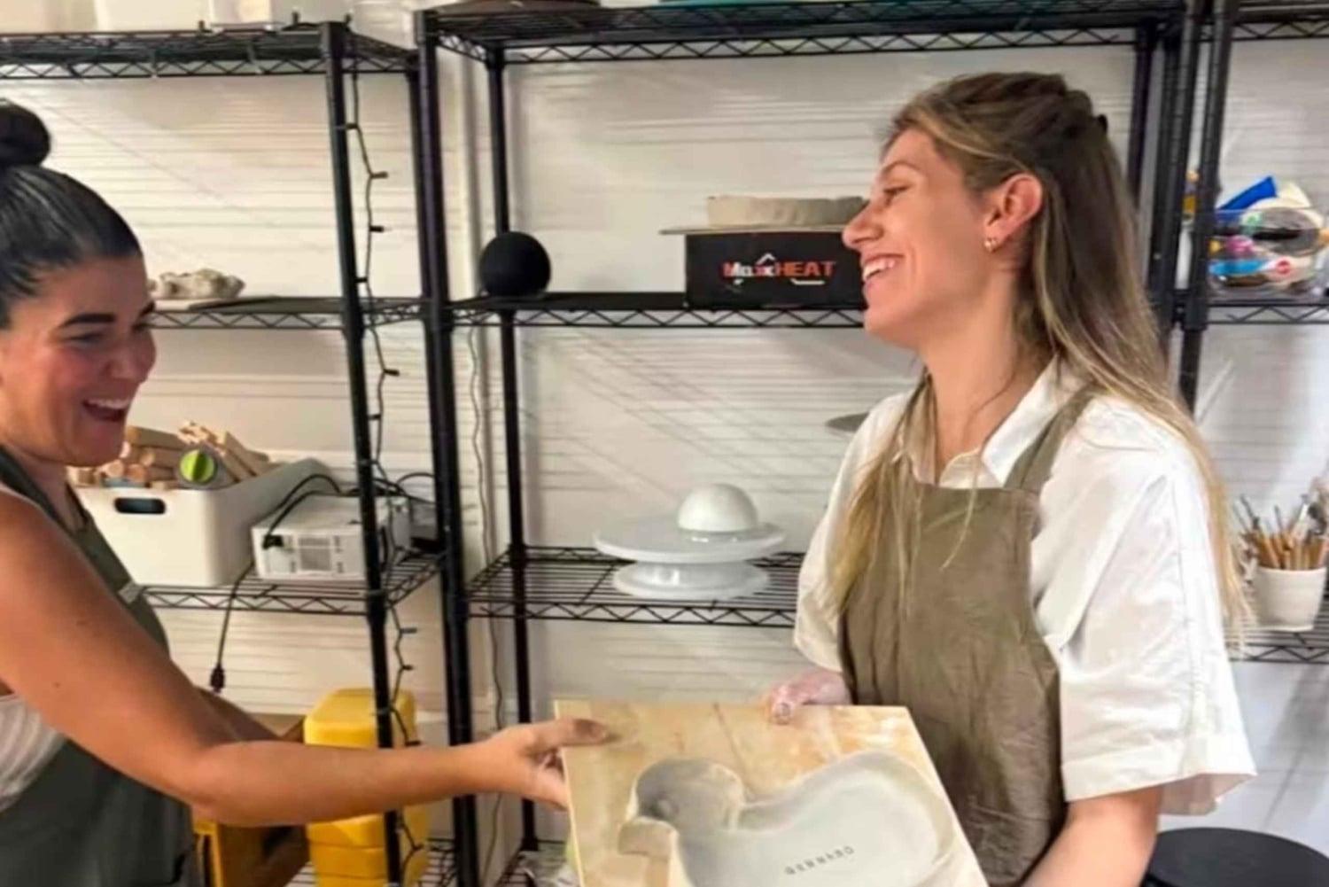 Luego, comienzas a moldear tu pieza paso a paso, disfrutando del proceso en un entorno social y sin prisas. Con acompañamiento constante, la experiencia fluye entre creatividad y buena compañía, finalizando con la satisfacción de haber creado algo único con tus propias manos.