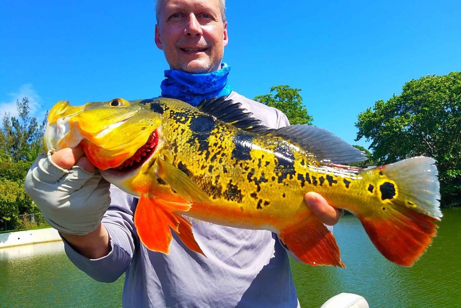 Los viajeros explorarán Miami desde el agua. A sólo 15 minutos del Aeropuerto Internacional y a 30 minutos de Bayside y de los cruceros de Miami, todo ello fácilmente accesible en Uber o Lyft. Llegarás a un bonito lago PRIVADO, donde despegarás para la aventura del día. La zona tiene más de 15 millas en tres lagos completamente privados que explorarás en busca de la exótica lubina pavo real y el pez cuchillo payaso, de dura lucha.