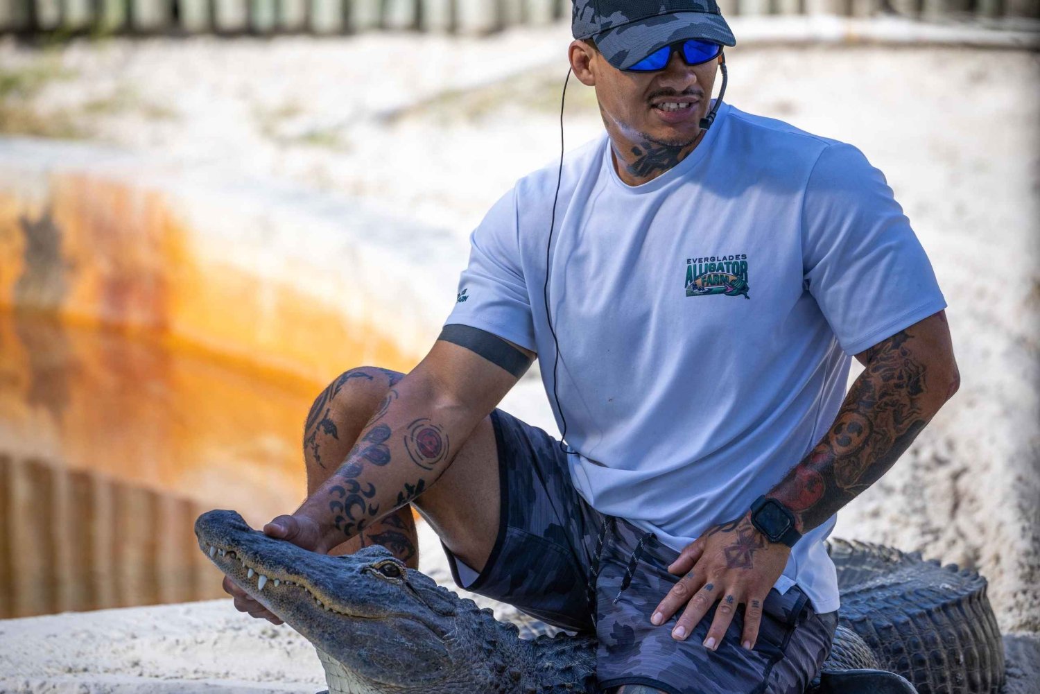 Después del paseo en hidrodeslizador, continúa tu viaje en la granja de cocodrilos de los Everglades. Observa demostraciones en vivo de la alimentación de los cocodrilos y aprende sobre estas fascinantes criaturas durante los espectáculos de manejo de cocodrilos. Pasea por la granja para ver cientos de cocodrilos en su hábitat natural y obtén información sobre su comportamiento y conservación.