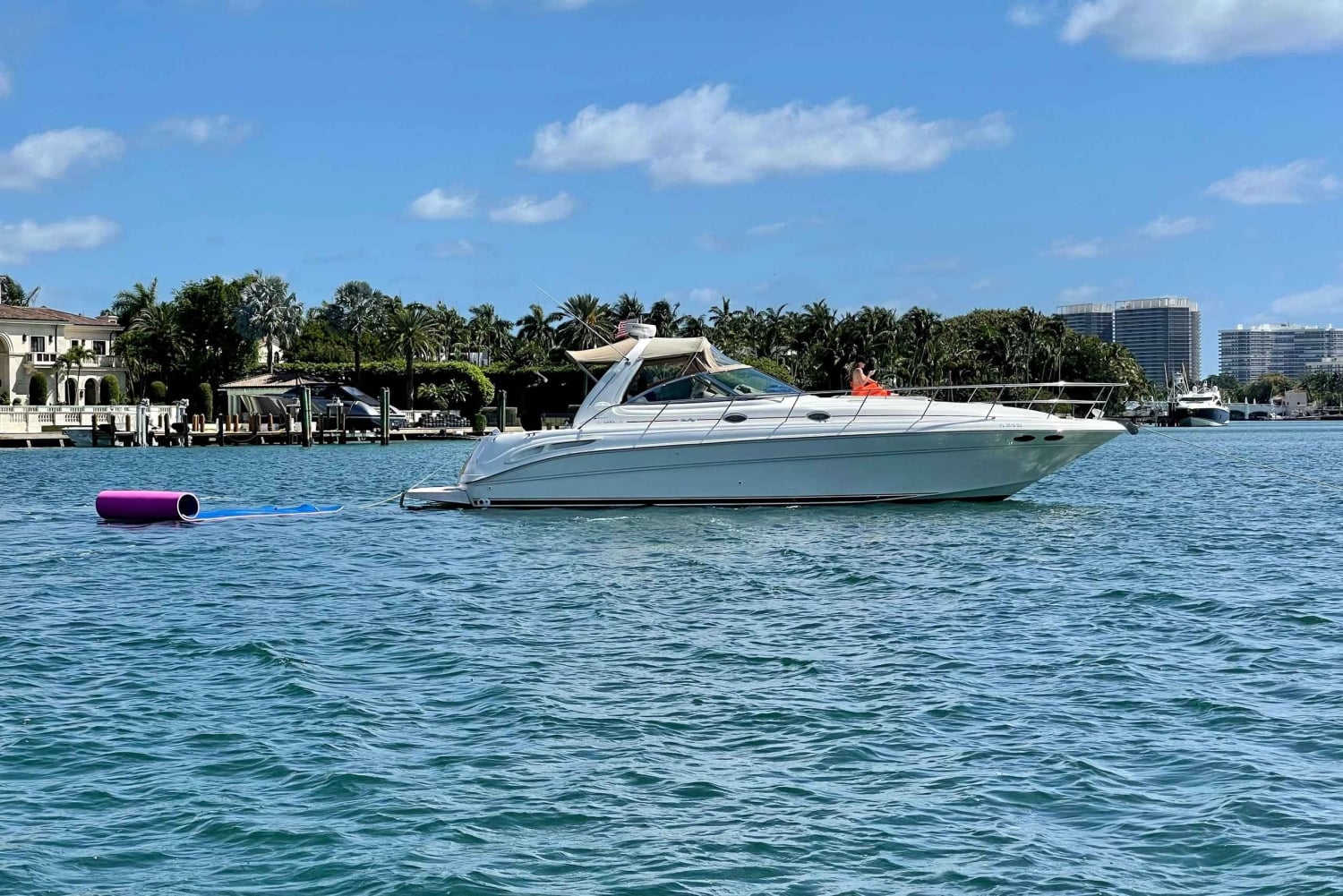 Ten la opción de navegar al atardecer o al anochecer para contemplar el paisaje urbano iluminado de Miami. Navega por Fisher Island, Bayside, Key Biscayne y fondea cerca de Nixon Sandbar. O elige navegar por el Intercoastal, ver las mansiones de Indian Creek, navegar hasta Bal Harbor y fondear cerca de Haulover Sandbar.