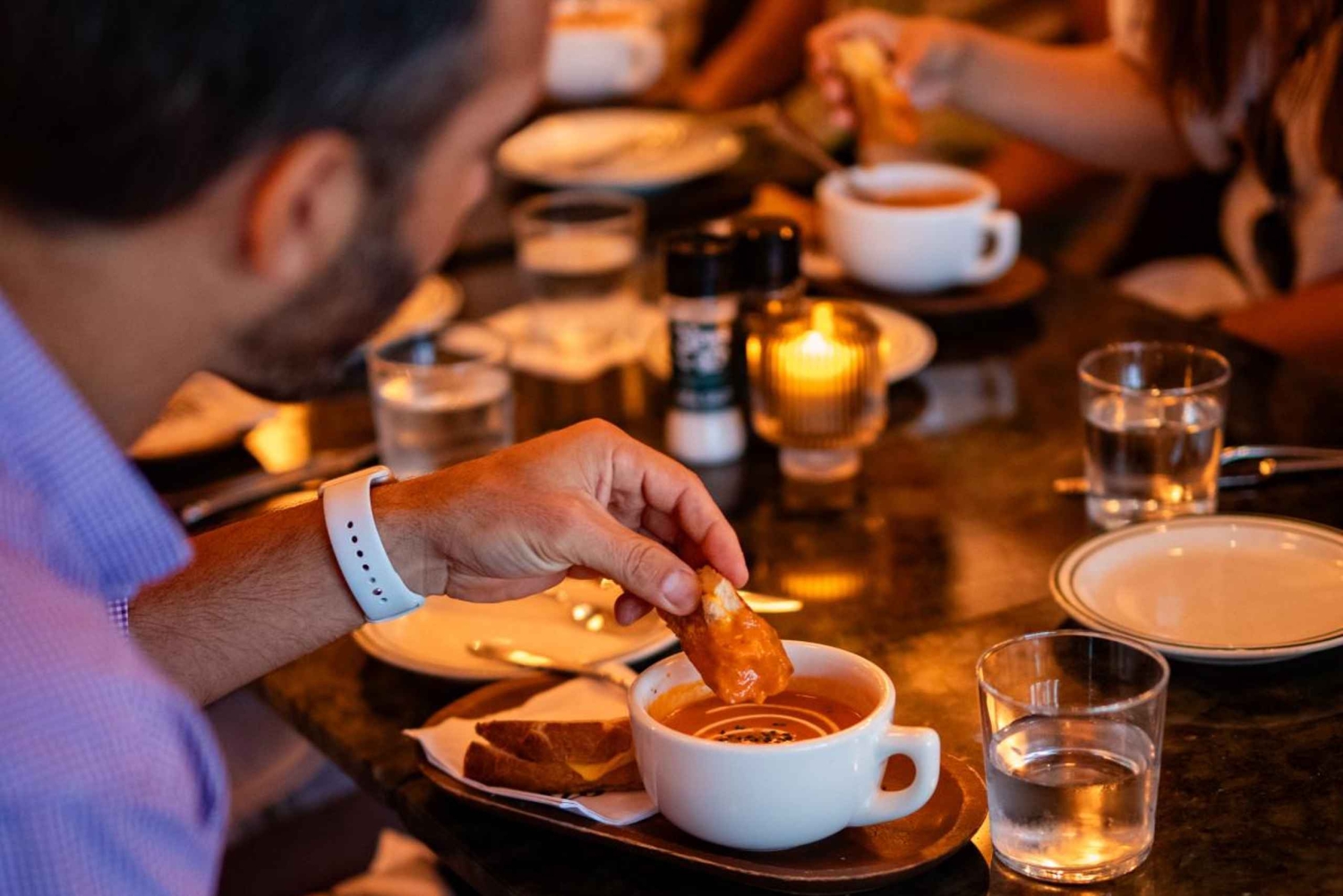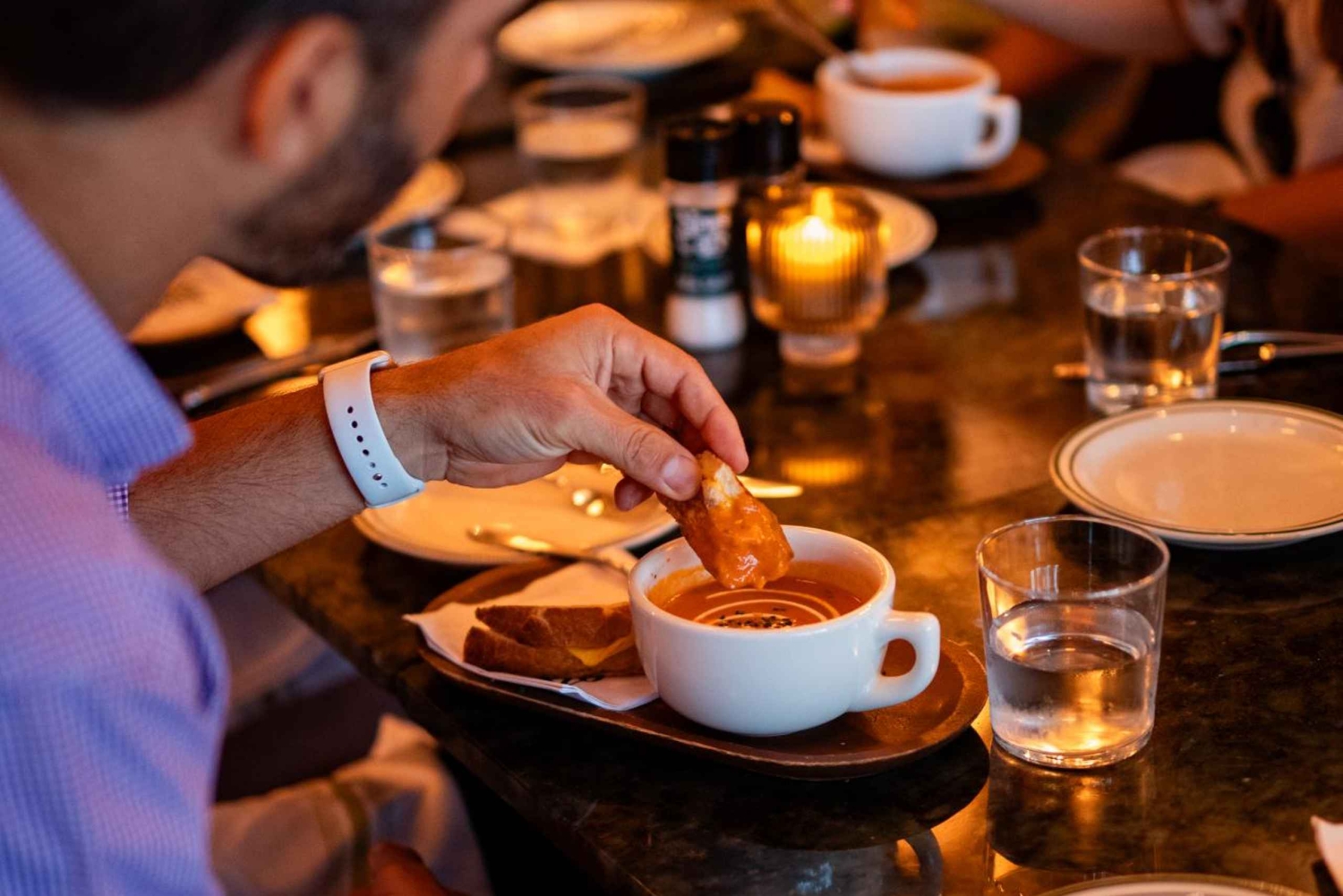 Deléitate con un atrevido sándwich tropical, empanadas crujientes, ricos platos latinos, tacos picantes y una sopa mundialmente famosa (en los tours de tarde), todo ello coronado con un dulce postre sorpresa.
