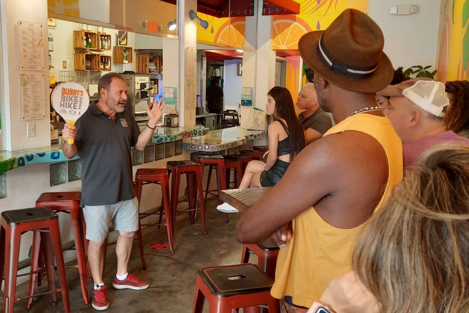 Embárcate en nuestro tour a pie South Beach Food & Fun Art Deco para disfrutar de una deliciosa aventura por el barrio más emblemático de Miami. Tu guía local dará vida a Ocean Drive con jugosas historias sobre sus monumentos Art Decó de fama mundial y la legendaria mansión Versace. Pero la diversión no acaba ahí: exploraremos más allá de la calle principal, paseando por el frondoso Lummus Park, la encantadora Española Way y los tesoros ocultos de South Beach. Por el camino, disfruta de deliciosos bocados locales y de un día lleno de sabor, historia y cultura vibrante, ¡todo con Bobby's Bike, Hike & Food Tours!