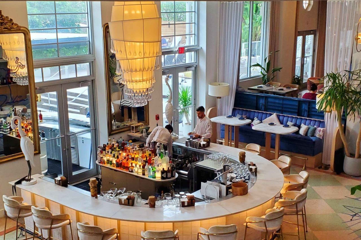 50 % de descuento en cócteles/bebidas durante todo el día en un histórico hotel Art Déco en Ocean Drive.