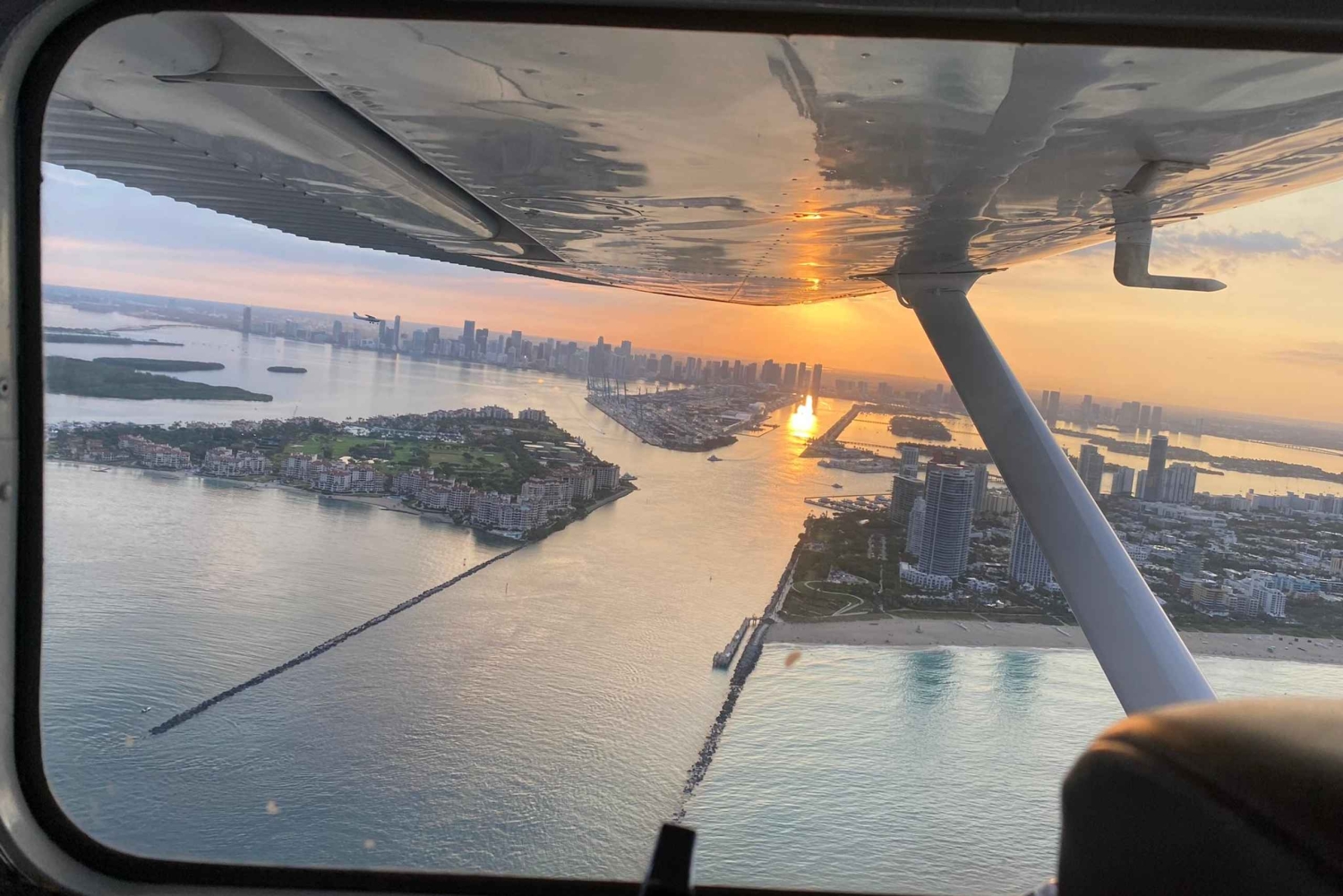 Experience the beauty of a sunset over Miami from a bird's-eye perspective on a private, 50-minute flight. Relax and enjoy non-alcoholic champagne while you soar through the skies.