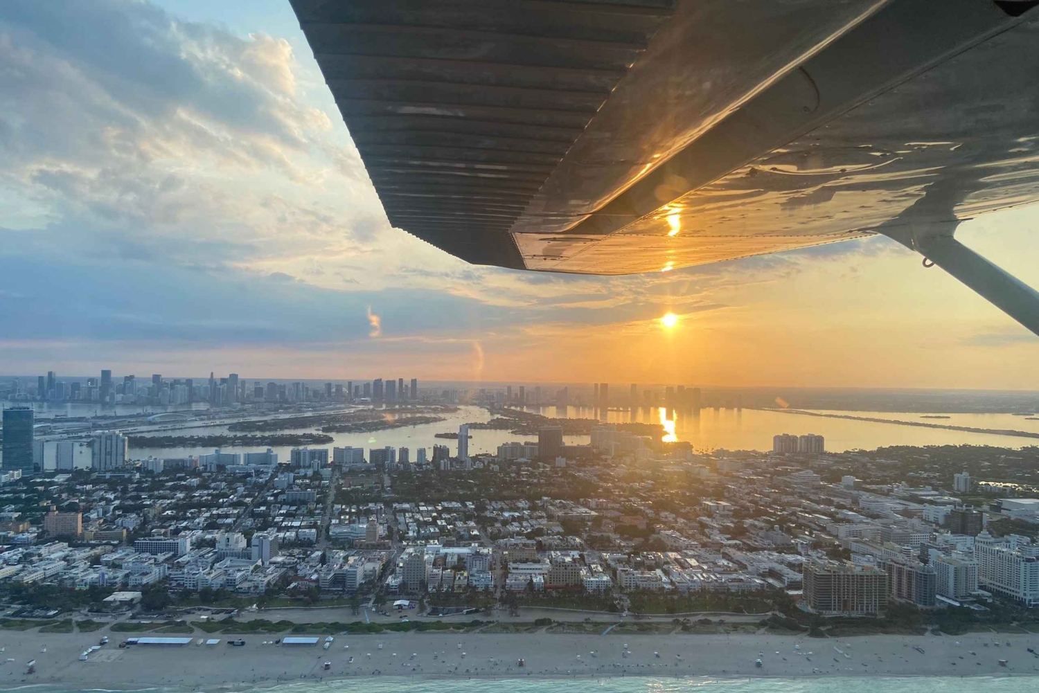 Begin your tour at Miami Executive Airport. As you begin the ascent, take in the views of the sunset and Miami coastline. Snap pictures of Miami Beach and Key Biscayne before flying further over downtown Miami.