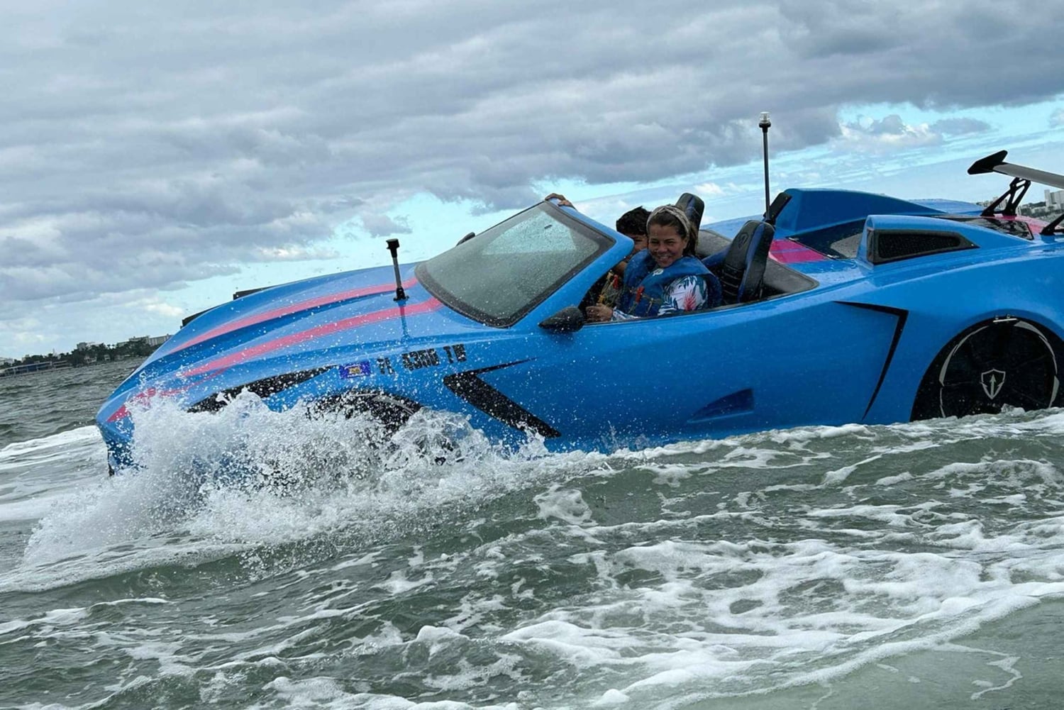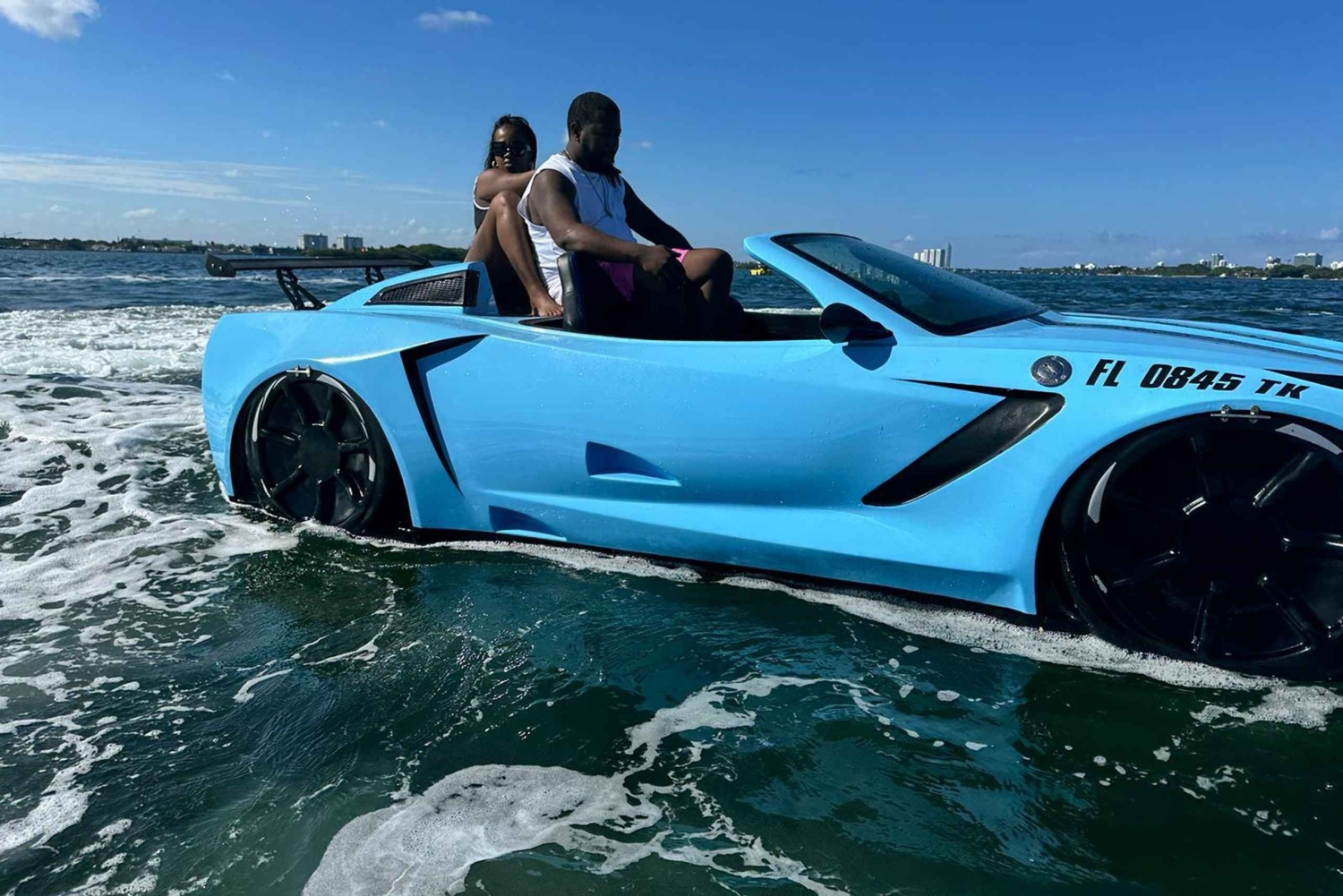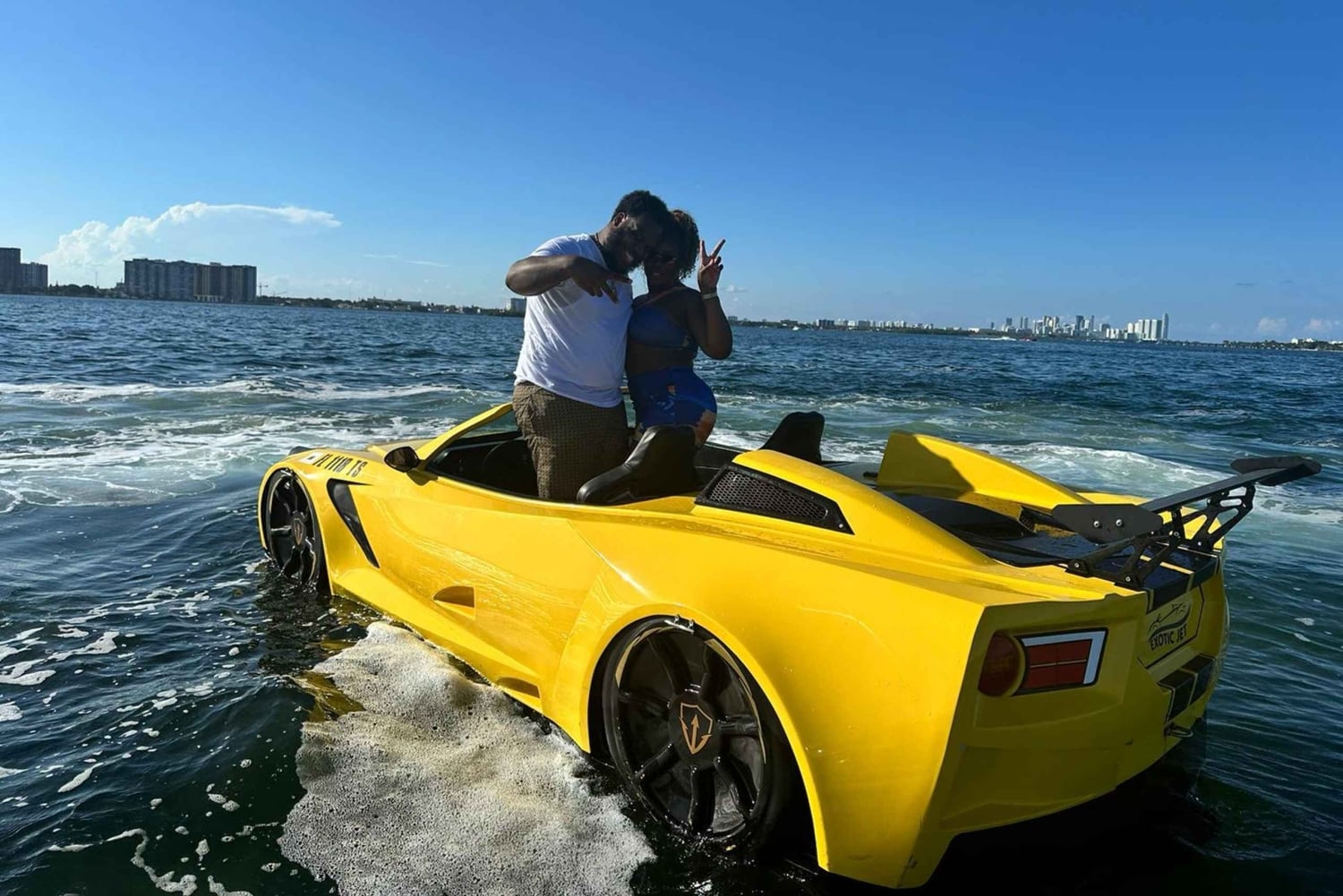 Discover Miami aboard a one-of-a-kind JetCar, which combines the sleek design of a sports car with the exhilarating performance of a jet ski.