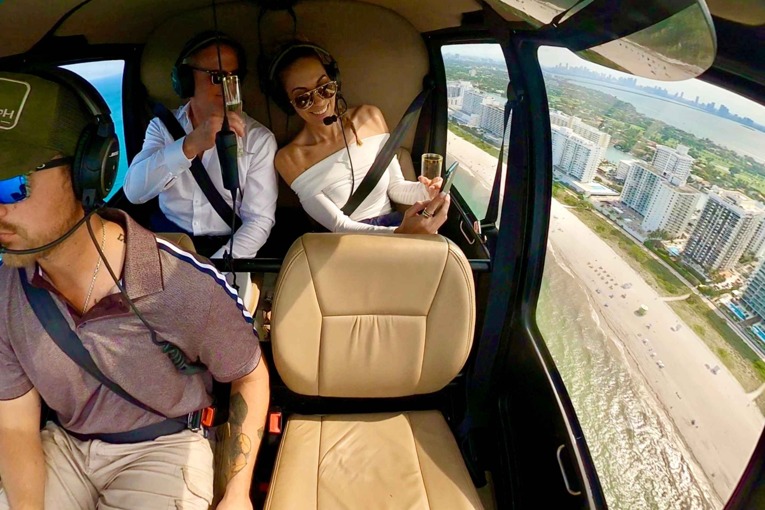 Clink your glasses and sip champagne on a private helicopter tour with your loved one while admiring unbeatable views of Miami. Have an unforgettable date or celebrate a special occasion in style.