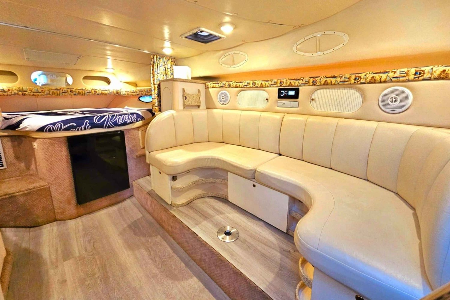 Nouse 37-jalkaan Rinker Fiestaan ja lähde yksityiselle jahtiseikkailulle, joka on suunniteltu unohtumattomiin juhliin. Tilaa on jopa 12 vieraalle, joten tämä elämys sopii täydellisesti syntymäpäiville, polttareille, romanttisille lomille tai hauskan päivän viettoon kavereiden kanssa.