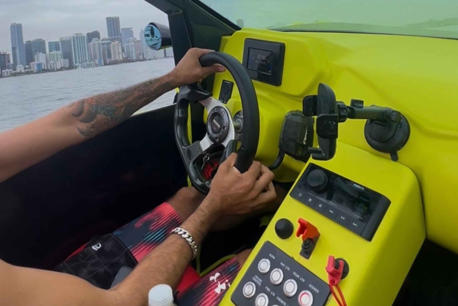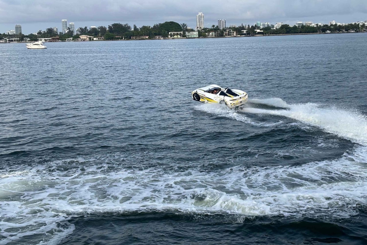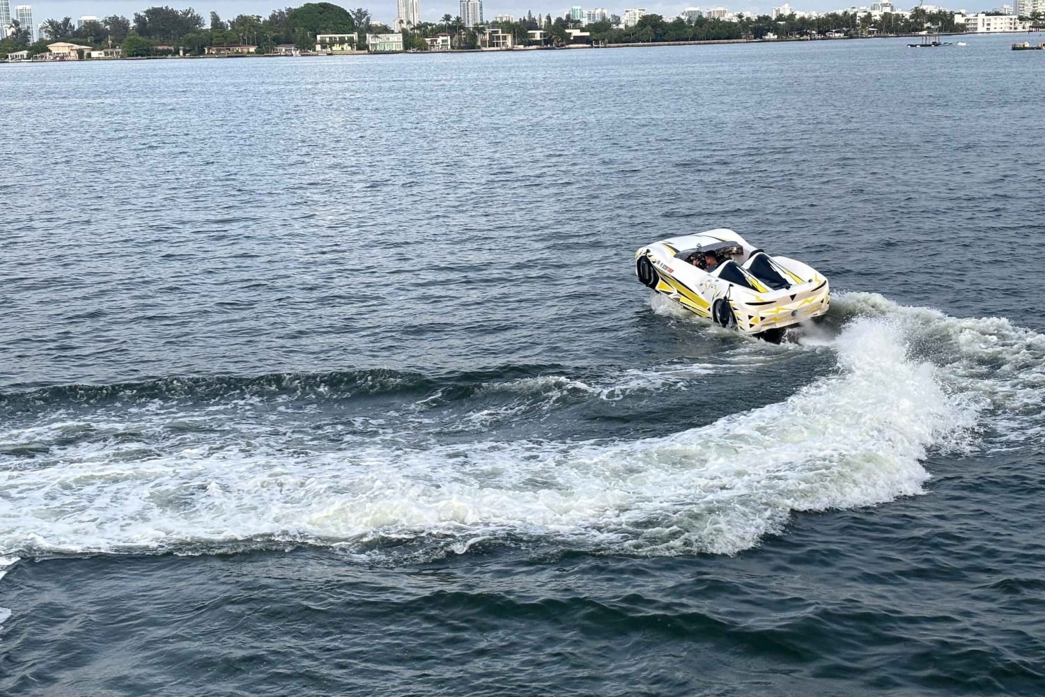 高級スポーツカーで水上を走り、マイアミ湾エリアをドライブするスリルを味わってください。美しい大邸宅、高層ビル、イルカを眺めながら、お気に入りの音楽を水上で楽しみながらドライブをお楽しみください。
