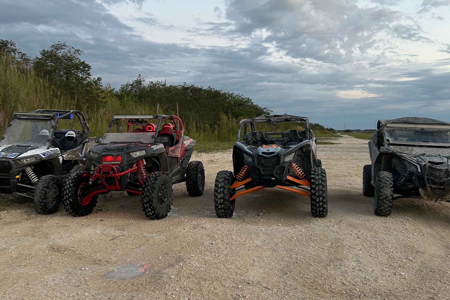 ガイド付きオフロードバギーツアーでマイアミの隠れた宝石を発見してください。Can-Am MaverickまたはPolaris RZRを運転し、荒れたトレイル、砂利道、緑豊かな湿地帯を探索してください。2人乗りと4人乗りが利用可能です。