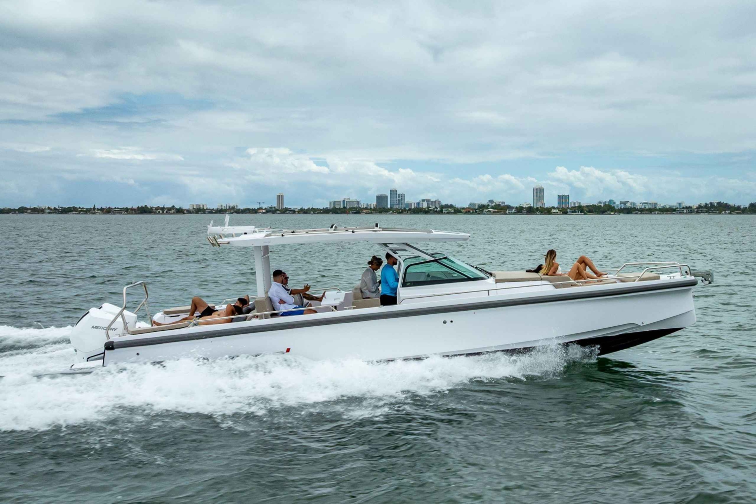 Navega pela icónica linha do horizonte de Miami, explora bancos de areia imaculados ou navega na Intracoastal Waterway. O Sun Top oferece sombra, enquanto o convés de popa aberto permite-te apanhar sol e apreciar as vistas.