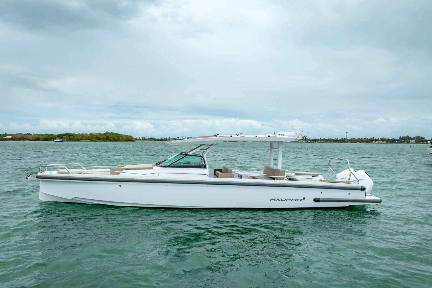 Experimenta as vias navegáveis de Miami como nunca antes no 2025 Axopar 37 Sun Top Brabus Edition. Sente o impulso dos dois motores Mercury 300HP que te impulsionam pela BaÃa de Biscayne. Esta Mediterranean spec Brabus Edition apresenta um design elegante, uma Sun Top confortável e uma presença poderosa.