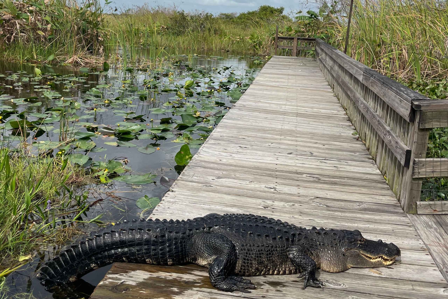 Após o serviço de busca no hotel, desfruta de uma excursão narrada a caminho do Everglades National Park. Embarca num emocionante passeio de aerobarco de 75 minutos até ao 'River of Grass'. Visita uma aldeia nativa americana numa ilha de árvores apenas acessÃvel a partir do aerobarco. Aprende como e porque é que os nativos americanos sobreviveram neste ambiente tão duro. Visita a região intocada do Everglades National Park, conhecida como as 10.000 ilhas, através de uma viagem de barco de 80 minutos. Aventurar-te-ás numa ilha remota e terás a oportunidade de explorar um pouco por tua conta. Neste cruzeiro de aventura nos mangais, poderás ver grupos de golfinhos, manatins, pelicanos, colhereiros rosados, peixes-serra, tartarugas marinhas e muito mais. A tua aventura terminará com uma relaxante caminhada guiada até uma bela cúpula de ciprestes, onde poderás observar aligátores, tartarugas e plantas muito raras, incluindo bromélias e orquÃdeas nativas. Esta viagem inclui um delicioso almoço (encomenda do menu) com opções vegetarianas e veganas. Outros destaques incluem uma paragem num posto de comércio histórico, o mais pequeno posto de correios dos EUA, e uma visita à galeria de arte de um famoso artista local. Deixa-nos no teu hotel, no aeroporto ou no porto de cruzeiros para terminares a tua fantástica experiência. Podemos guardar a tua bagagem connosco durante o dia.