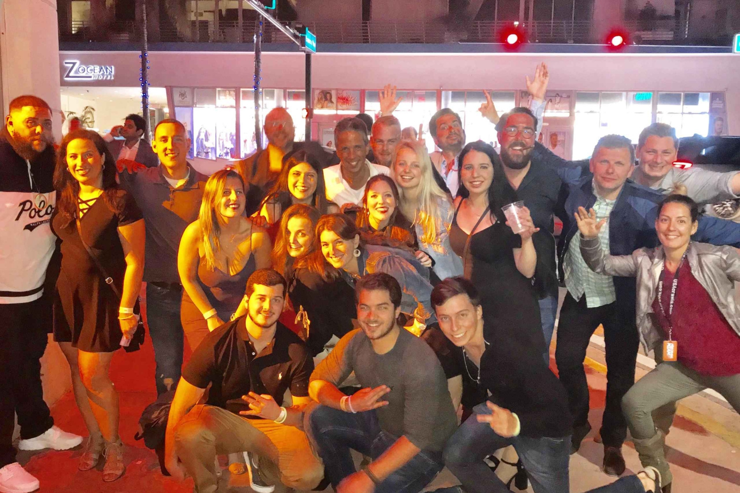 Varje fredag och lördag! Häng med festprissar från hela världen och upplev energin i Miami Beachs nattliv när vi besöker fyra av South Beachs bästa barer, lounger och festställen – och avslutar natten på Ocean Drives populäraste och mest energiska klubbar, alla med gratis VIP-entré.